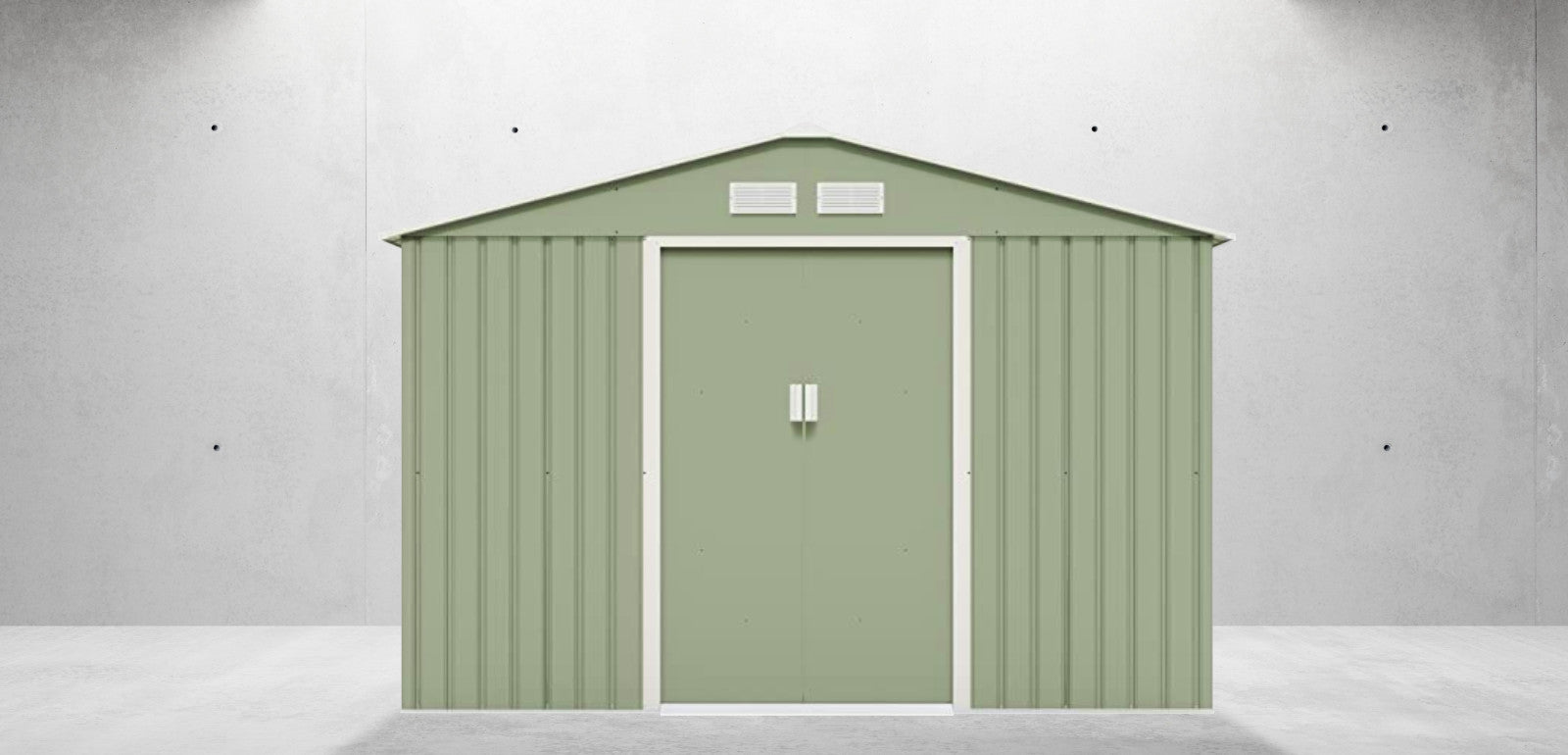 Der Schuppen ist aus lackiertem und verzinktem Stahlblech gefertigt und in einem zeitlosen Design gehalten. Der mitgelieferte Fundament-Rahmen aus Metall bietet Stabilität und einen sicheren Stand - Sie haben hier die Möglichkeit einen Boden einzuziehen (Bodenplatten nicht im Lieferumfang enthalten).