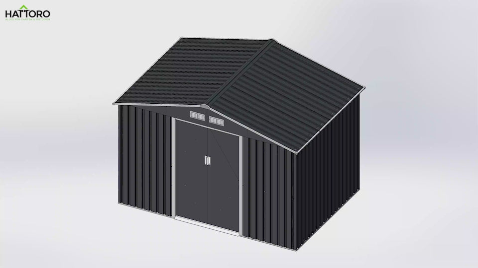 Der Schuppen ist aus lackiertem und verzinktem Stahlblech gefertigt und in einem zeitlosen Design gehalten. Der mitgelieferte Fundament-Rahmen aus Metall bietet Stabilität und einen sicheren Stand - Sie haben hier die Möglichkeit einen Boden einzuziehen (Bodenplatten nicht im Lieferumfang enthalten). Beide Dachformen lassen Niederschlag problemlos ablaufen. Das HATTORO Gerätehaus ist leicht zu reinigen und außerdem wartungsfrei.